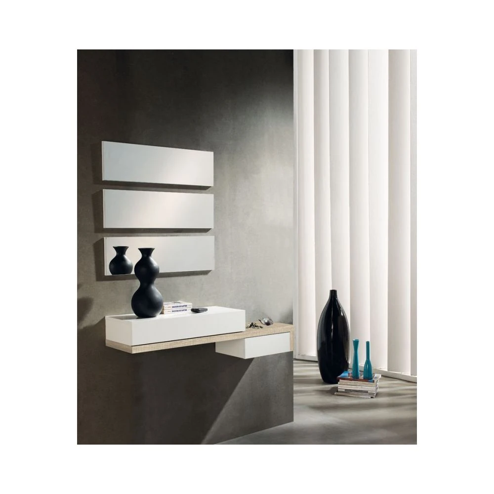 La faible profondeur de ce meuble suspendu dégagera votre entrée de toute lourdeur tout en vous offrant une surface de rangement appréciable grâce aux deux tiroirs parfaitement intégrés.