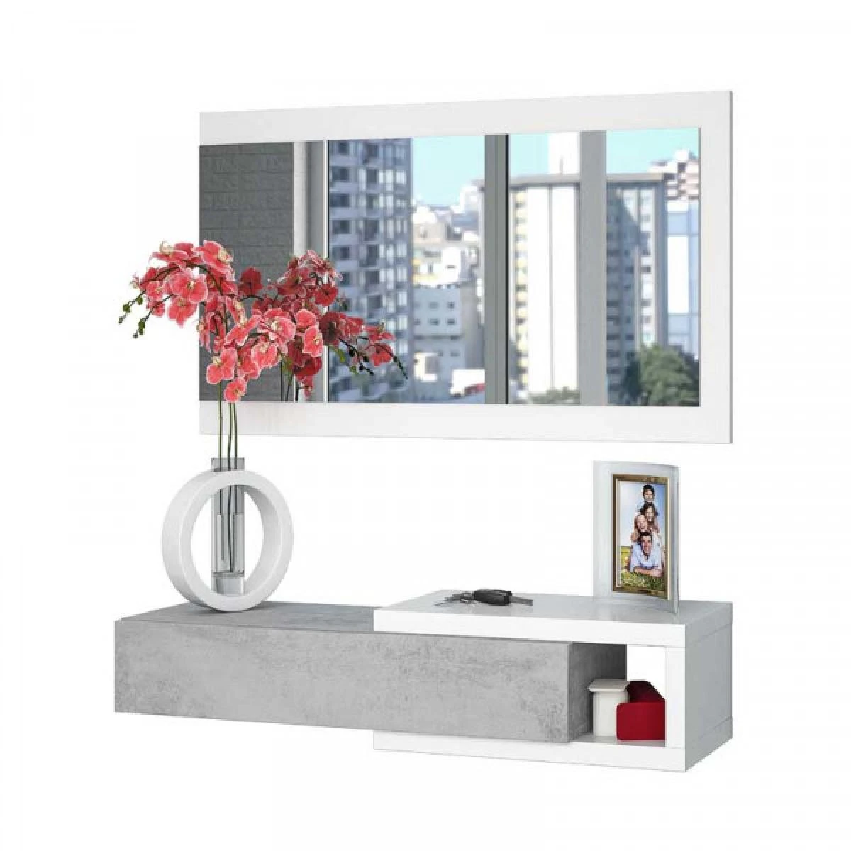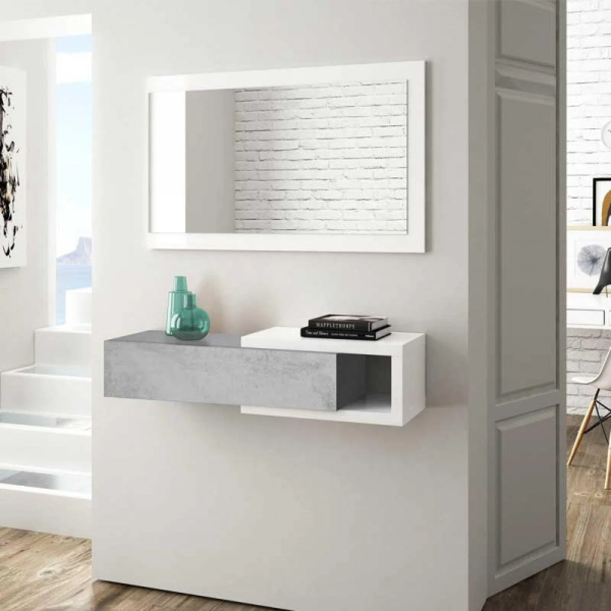 Points forts Dansmamaison Meuble d’entrée suspendu + miroir Blanc/Béton – NONA – L 95 x l 26 x H 19 cm