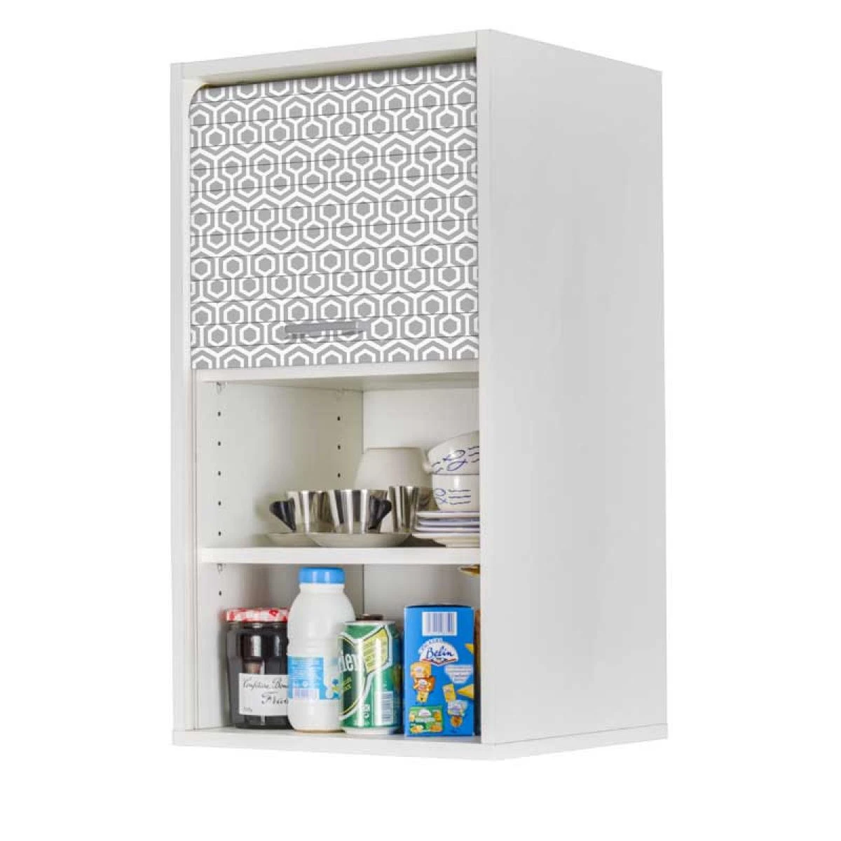 Points forts Tousmesmeubles Meuble de rangement de cuisine moyen Blanc/Hexagones gris – DANNIE