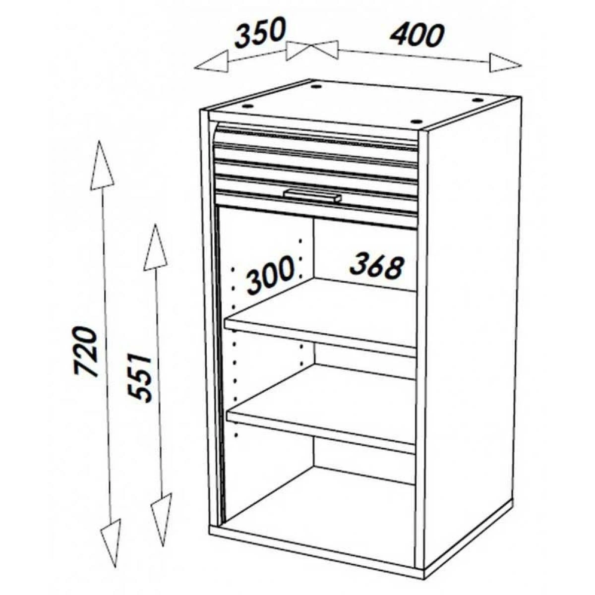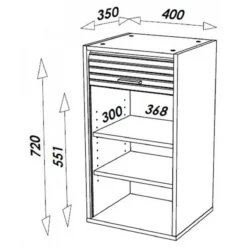 Le rideau coulissant ne nĂ©cessite aucun dĂ©battement pour ĂŞtre ouvert, il permet ainsi Ă ce petit meuble d’ĂŞtre posĂ© sur un plan de travail (en montant ou pas le socle du meuble) ou d’ĂŞtre suspendu (fixations fournies).