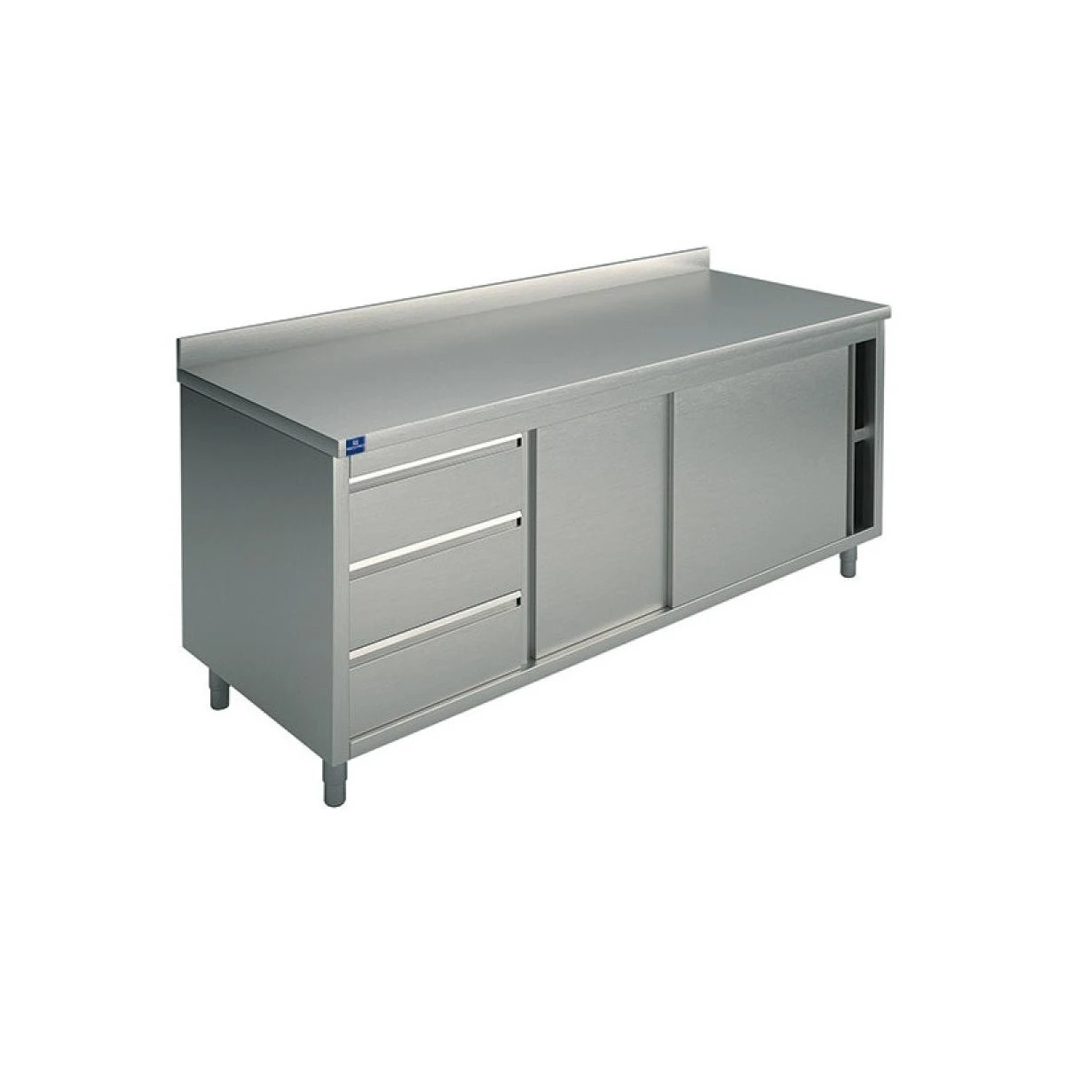 Meuble inox bas avec tiroir Ă droite ou Ă gauche et dosseret, profondeur 600 mm |