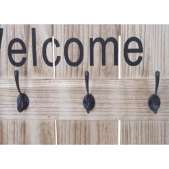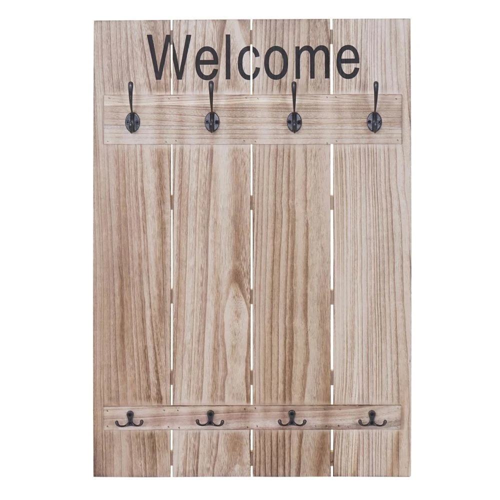 Portemanteau mural HWC-C89, WELCOME, 91x60cm ~ brun naturel shabby