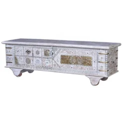 Ensemble De 3 Coffres / Bancs En Bois Et Polyester Coloris Gris.