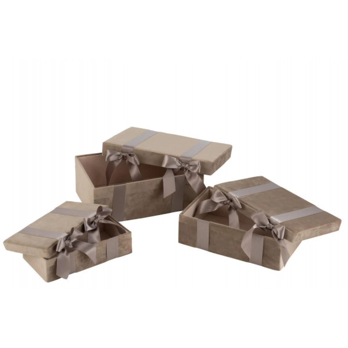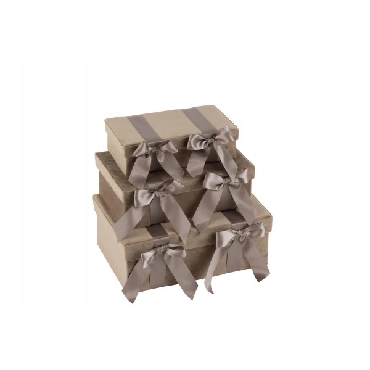 Points forts Dansmamaison Set De 3 Coffre Velours/ Satin Beige – L 39 x l 27 x H 14 cm