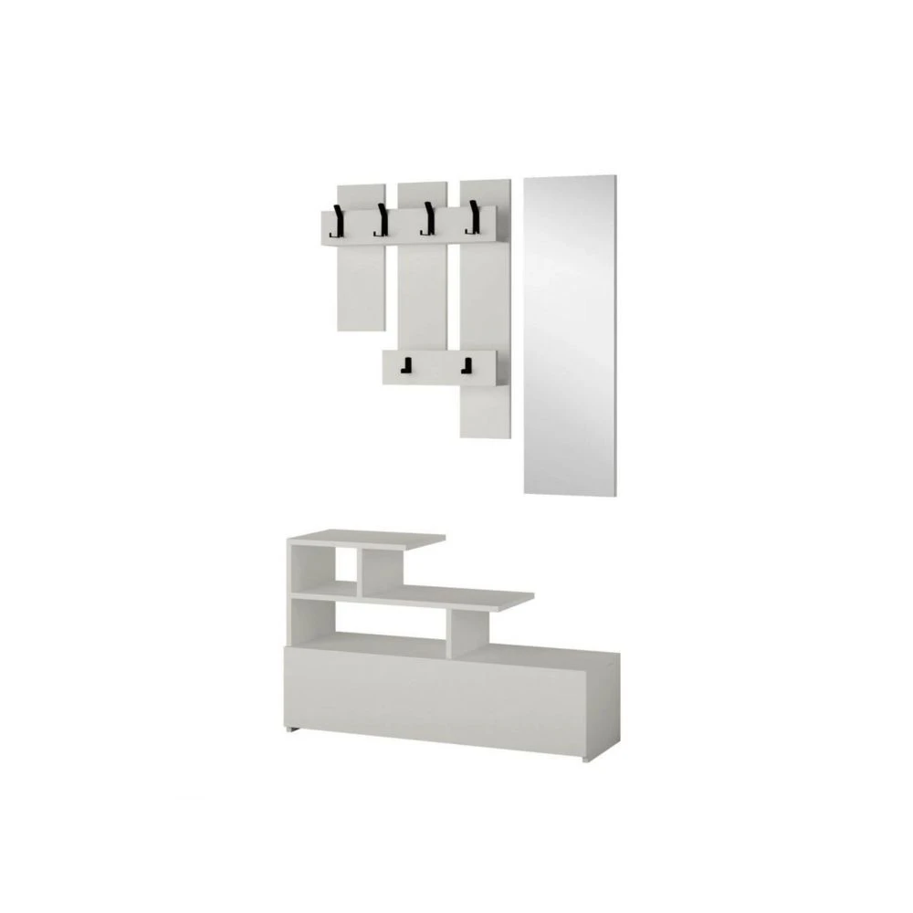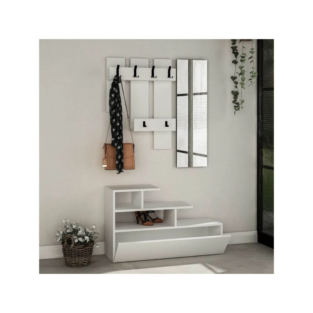 Collection ZIKA de style contemporain se compose de meubles aux lignes sobres et intemporelles. DotĂ©e de nombreux rangements elle est Ă©galement très fonctionnelle.Escalier en forme d’escalier en panneau de particules revĂŞtu de mĂ©lamine blanche avec 6 cintres et un grand miroir