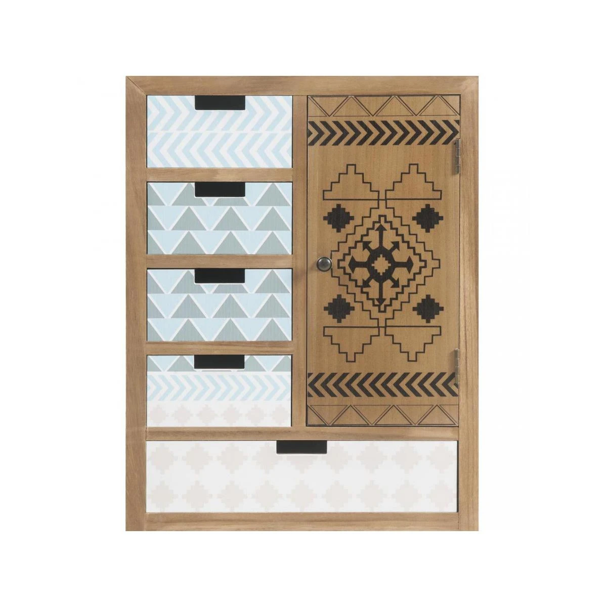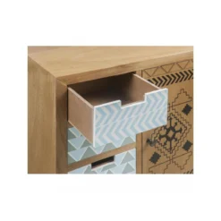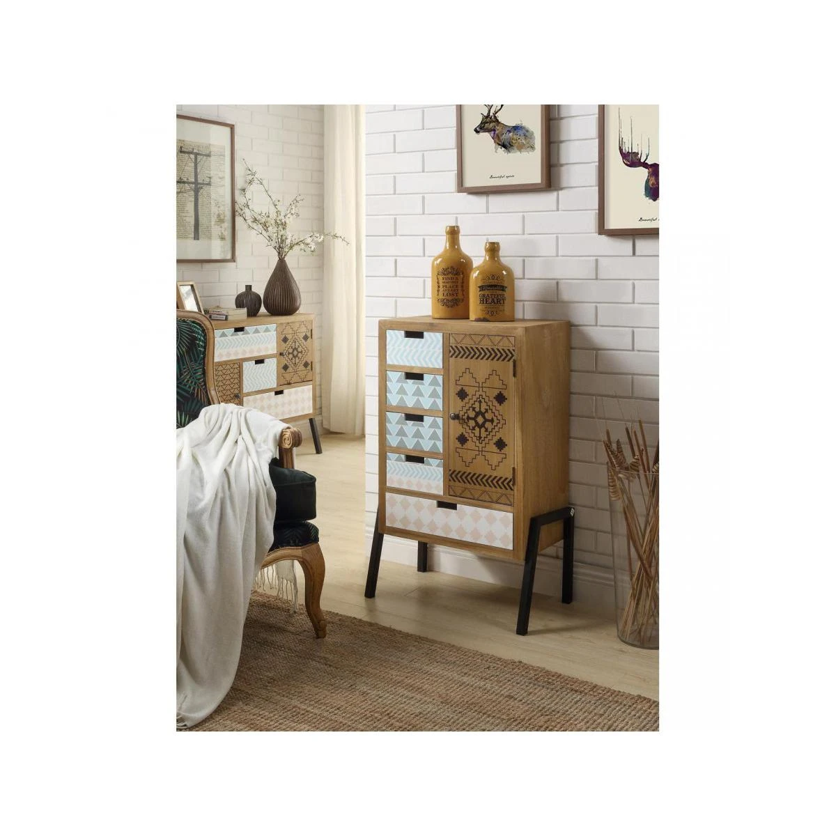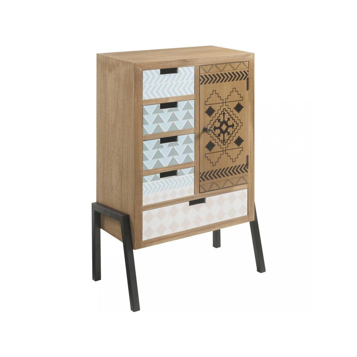 Meuble haut design en bois avec imprimes Texan a 1 porte et 5 tiroirs et ses pieds en metal noir