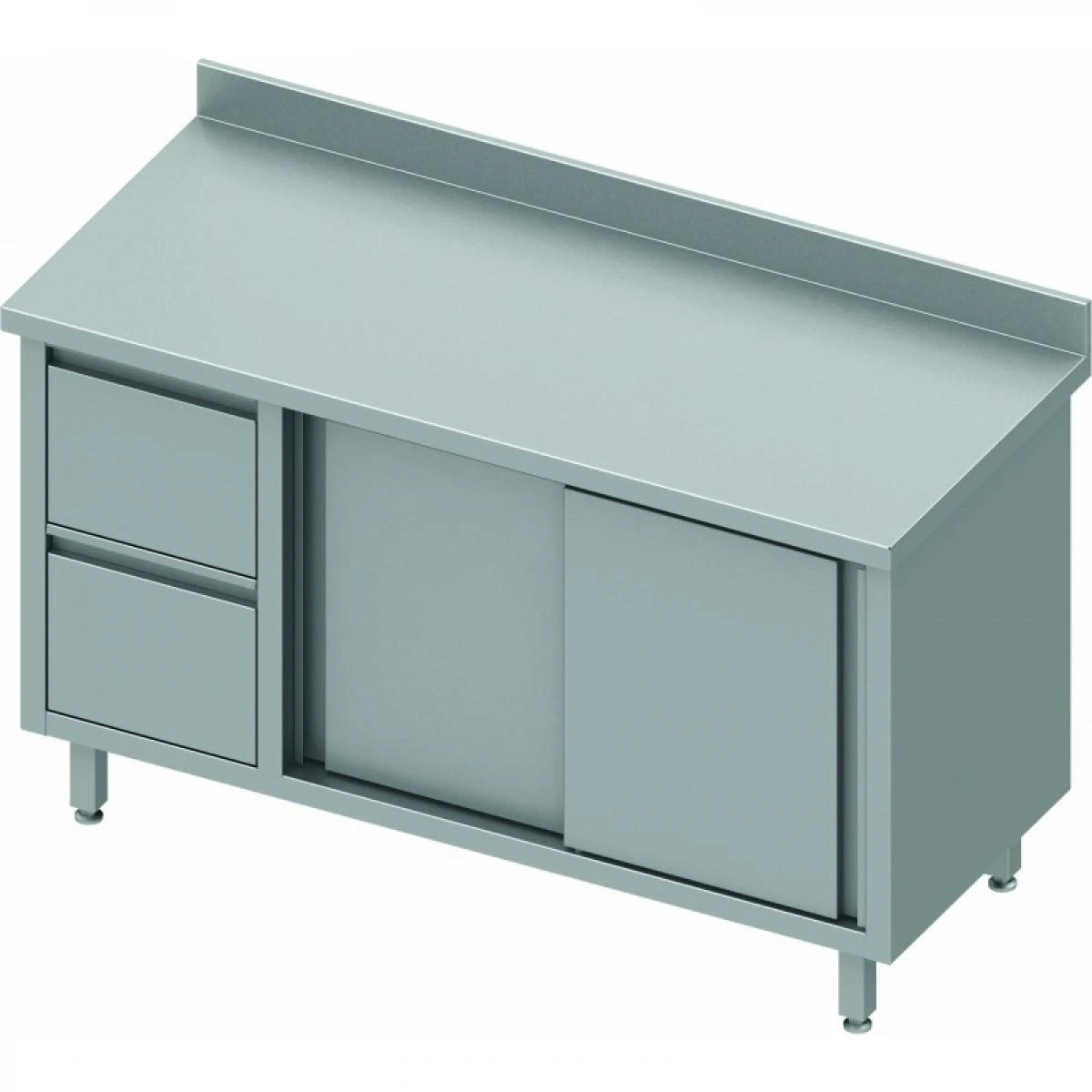 Points forts Materiel Chr Pro Table Armoire Inox AdossĂ©e – Porte Coulissante & 2 Tiroirs – Gamme 600 – Stalgast – 1500×600 Coulissante