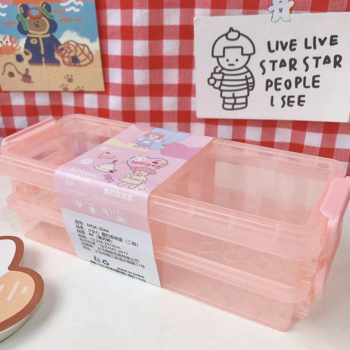 3 pcs dessin animé 2 couches de rangement boîte étudiant mignon transparent rangement stylo boîte de bureau de bureau de stockage de salle de classe de salon de tri