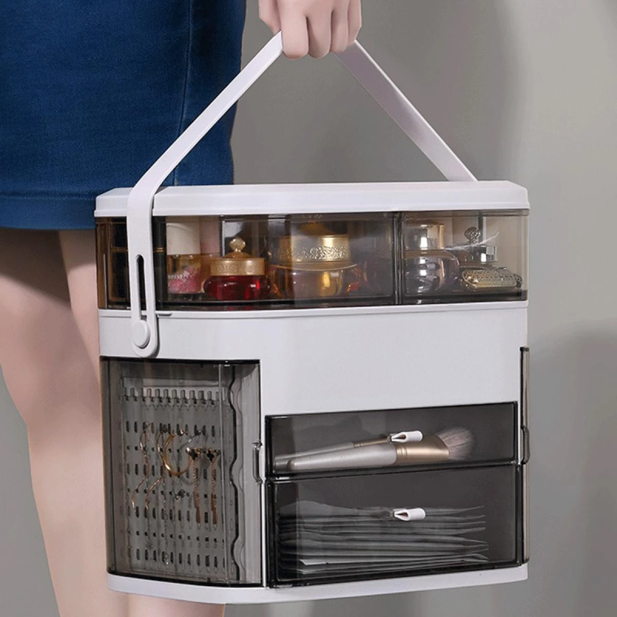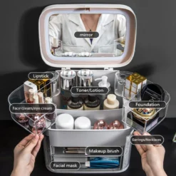 Boîte à bijoux multicouche avec miroir Cosmétiques Organiseur Bijoux Affichage Casket Boucles d’oreilles Boîtes Boîte Bijoux Boîte de rangement Coffret cadeau
