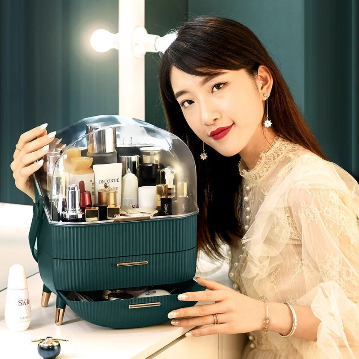Points forts Universal Porte-brosse pour maquillage Boîte Home Agences Tableau Tableau Bijoux Clouds Polonais Maquillage Tiroir Conteneur Grande Capacité | Maquillage Organisateur