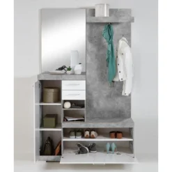 Points forts Pegane Vestiaire compact avec miroir coloris gris bĂ©ton LA/blanc brillant – Dim : L120 x H193,5 x P35,5 cm
