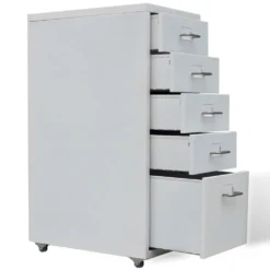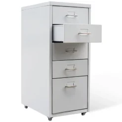 Ce classeur, au design simple et Ă©lĂ©gant, sera idĂ©al pour ranger diffĂ©rents papiers et articles de bureau, mais il sera aussi un beau supplĂ©ment dĂ©coratif Ă votre bureau. Avec 5 tiroirs, ce classeur dispose d’un espace de rangement suffisant pour organiser diffĂ©rents fichiers et dossiers. Les roulettes au bas de cette unitĂ© facilitent le dĂ©placement. Cette unitĂ© de tiroir conviendra Ă n’importe quel dĂ©cor de bureau grâce Ă son design classique. Comme il est fait d’acier, il est non seulement robuste, mais aussi facile Ă nettoyer et Ă entretenir. L’assemblage est très facile car les accessoires nĂ©cessaires sont inclus dans la livraison.