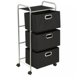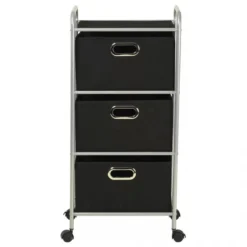 Cette étagère minimaliste avec des boîtes de rangement est une solution de rangement idéale pour la chambre à coucher ou la salle de bain. Elle est dotée d’un cadre en acier tubulaire à revêtement par poudre et de quatre roulettes, ce qui le rend léger, robuste et durable et facile à déplacer. Elle est livrée avec trois généreuses boîtes de rangement fabriquées en tissu non tissé écologique et conçue pour garder vos sacs, chaussures, serviettes ou autres petits objets à portée de main. Chaque boîte de rangement possède un œillet en métal pratique que vous pouvez utiliser pour les sortir de l’étagère, ce qui donne également une touche élégante. Vous pouvez également placer de petits objets sur l’étagère supérieure. L’assemblage est facile.Les commandes sont livrées à toutes adresses, en France continentale. Nous ne livrons pas la Corse et. vidaXL ne livre pas les DOM-TOM.
